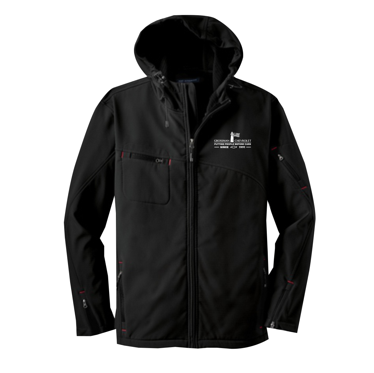 Our hooded soft shell stands up to the elements and stands out with texture and bar tack details. Highly breathable and soft, this water resistant jacket is just right for the workday or the weekend. A hood and zippered sleeve vents add function and up-to-the-minute appeal.